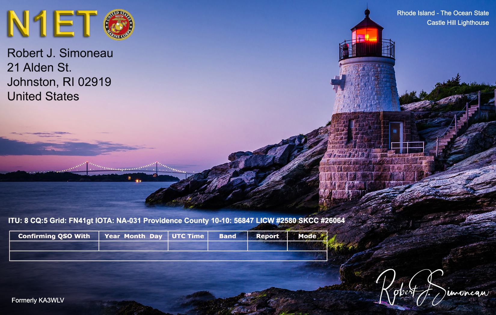 In March of 2021, a call came out from my town Fire Chief to all Amateurs to assist with communications for COVID 19 response. This sparked my interest, and I contacted a local Amateur Radio Club (Providence Radio Association - PRA - W1OP). The club offered no exams so I traveled to New England Sci-Tech in Natick, MA, and took my General Exam in June, returning there for my Extra Exam in December of 2021. On Feb 23, 2022, I was granted the new callsign of N1ET.